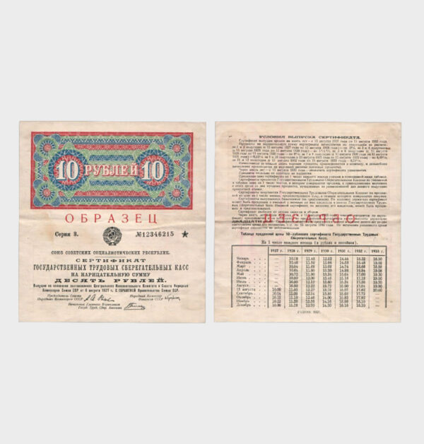 1927 – 10 Rubles – SAMPLE